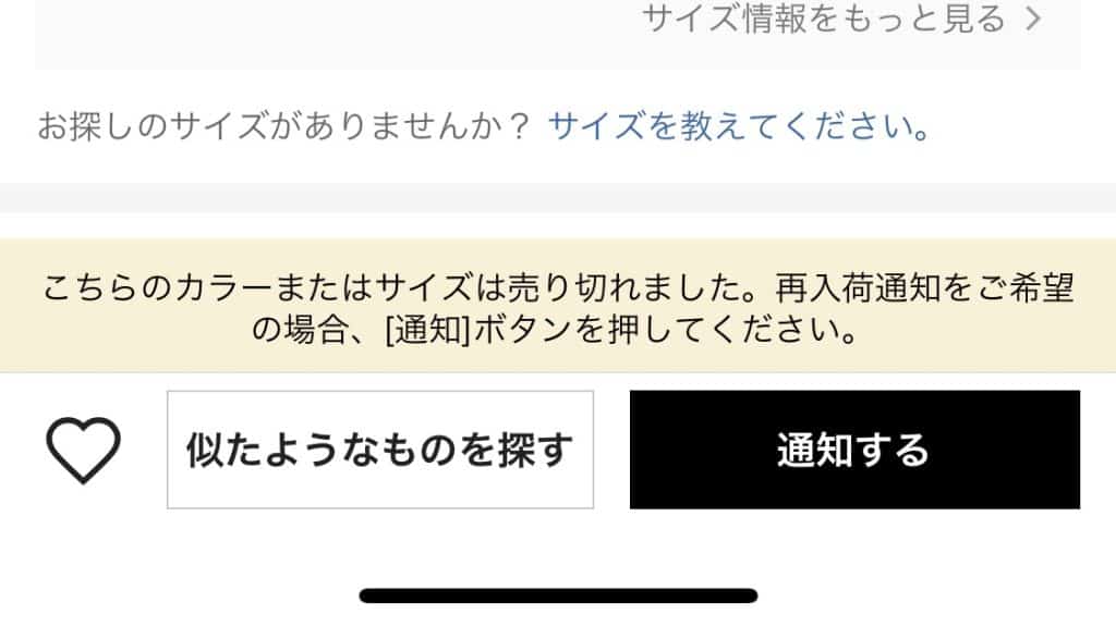 このボタンから通知設定をすることで、再入荷時に通知がもらえるようになります。